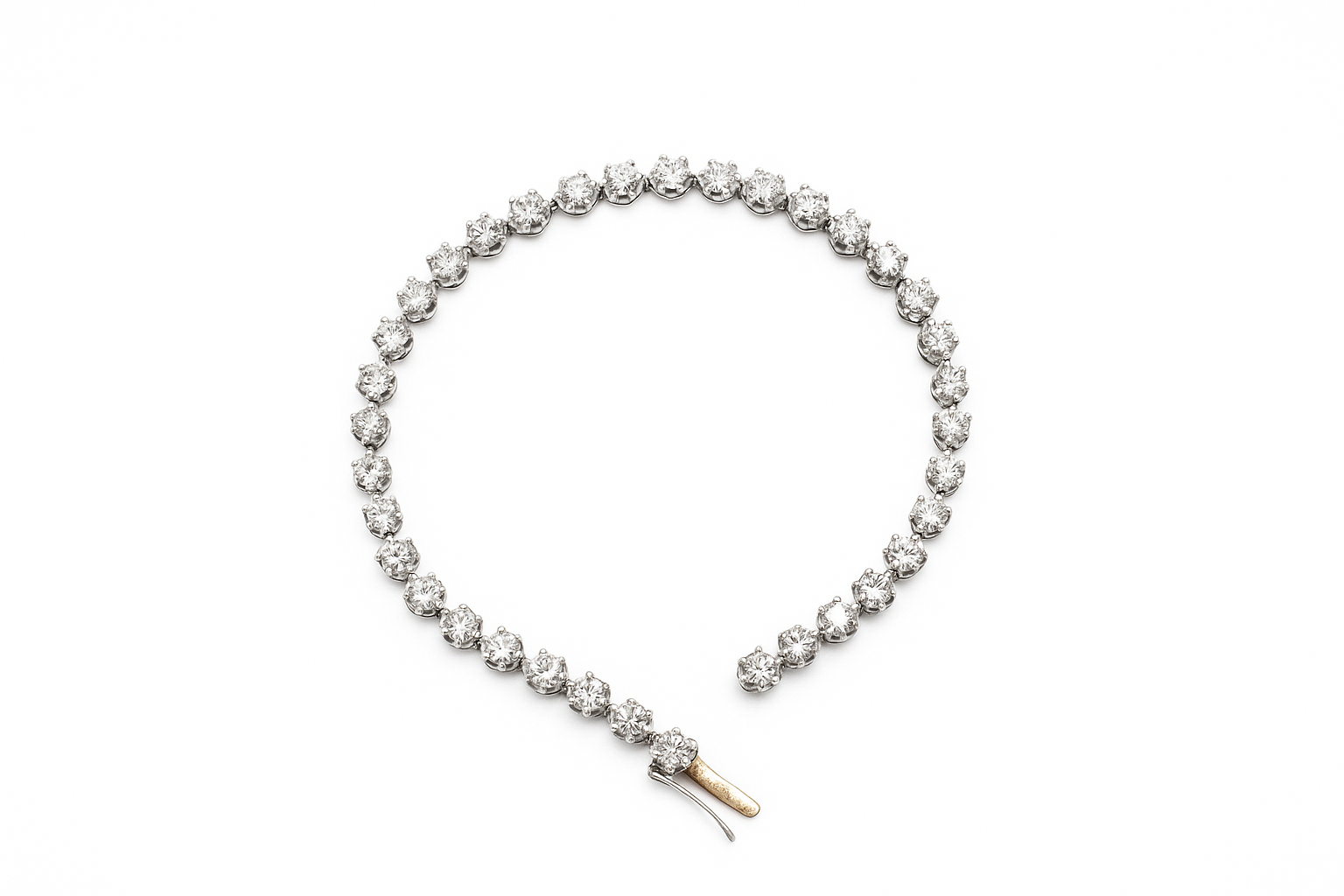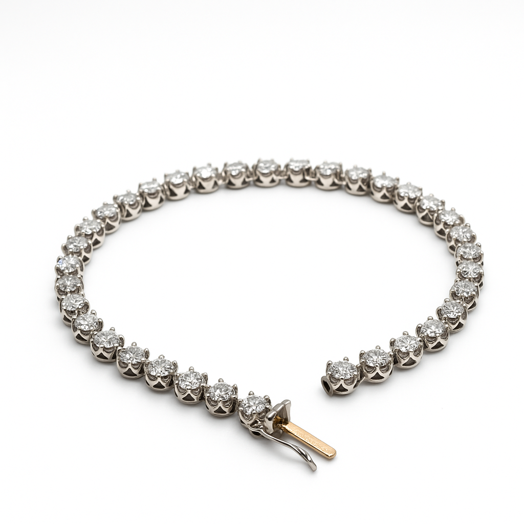 Pulsera realizada en platino tipo riviere con 38 diamantes montados en garras de cuatro puntas. Peso total aproximado: 6,32 cts.